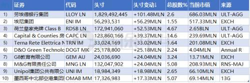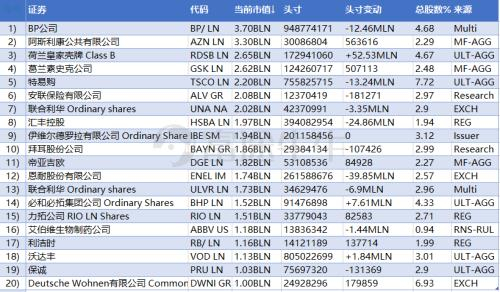 从头寸变化来看,今年申报中增加最多的是伦敦股票劳埃德银行、意大利股票埃尼集团和伦敦股票荷兰皇家壳牌B股等:
