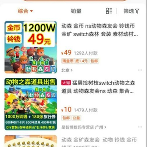 北京商报记者随后在多家电商平台上,以《动森》、道具为关键词搜索后发现,产品种类覆盖游戏中的家具、铃钱、黄金装备、里程卷等多个品类,而价格则从10-200元不等。截至发稿,销量最高的一家卖家已经有高达35万的月销量,并有将近13000条买家评论。