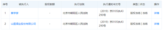 天眼查数据显示,北京山海蓝图商业有限公司是一家成立于2018年12月26日的新公司,该公司由蔡学彦和山图酒业股份有限公司分别持股50%,蔡学彦作为最终受益人也曾是厦门银鹭集团的创始股东。然而当前,二者皆被列入被执行人,股权已被冻结。