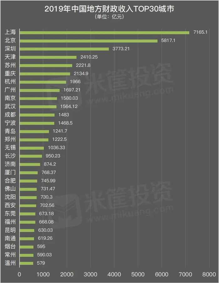 从财政收入最强30城看,基本还是与经济水平相契合的。