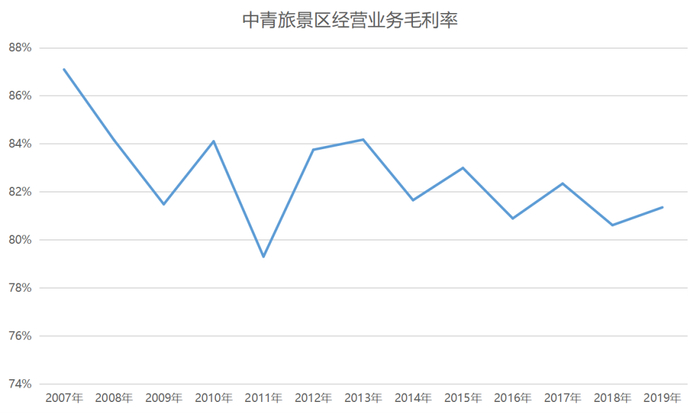 中青旅2011年财报显示,景区业务毛利率突然下降到79.3%,一改此前80%以上的水平。