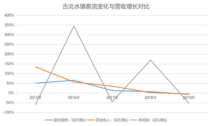 2016年净利润大幅增长后,古北水镇2017年净利润再度录得负增长,且同样在2018年大幅回升,并又在2019年大幅下跌。