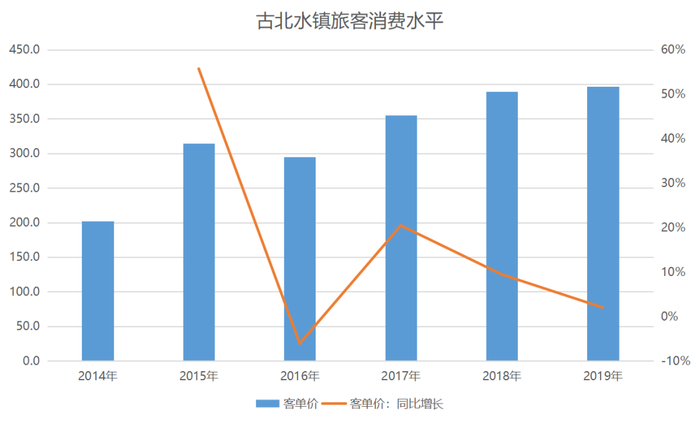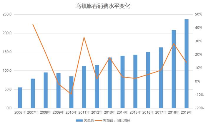 2019年,乌镇客单价237.3元,同比增长13.98%。