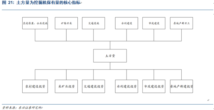 在各种工况和施工环境中,挖掘机承担了70%左右的土方工作量,因而采用土方作业量来衡量挖掘机的总需求是比较合理的。但实际情况中,各行业的土方作业量很难准确的统计,投资规模也很难衡量实际的土方需求量。