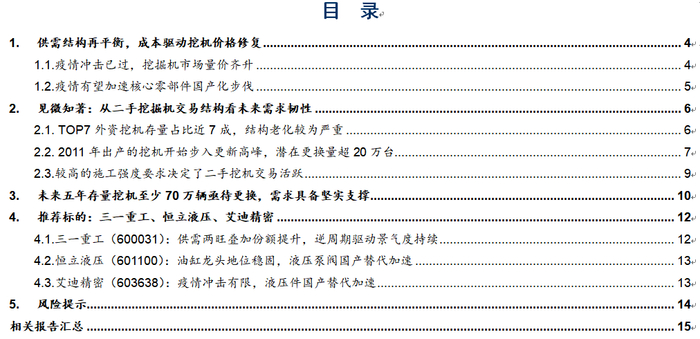 风险提示:1、工程机械需求不及预期;2、挖掘机样本数据失真。