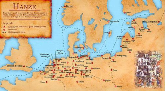 汉萨同盟城市分布图。来源:维基百科