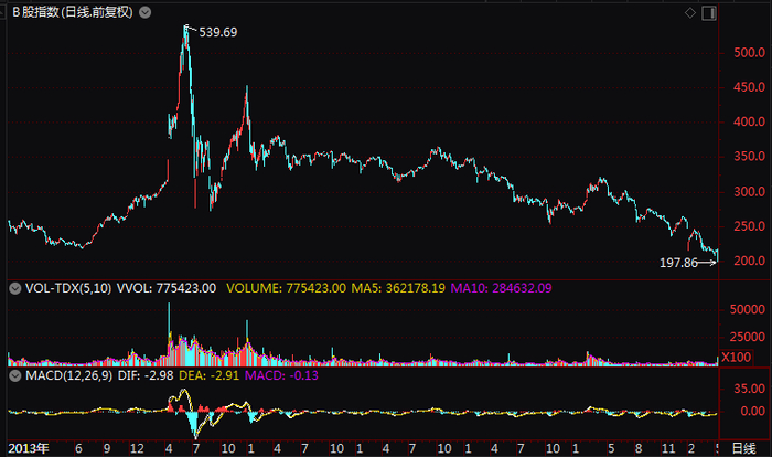 2001年2月19日,B股对内地自然人开放。在这一政策的刺激下,B股市场出现暴涨行情,以上证B股指数为例,从当时的80点一路上涨到6月1日的241.61点,涨幅高达200%。然而,到了6月1日,B股行情急转直下,2个月急挫46%。2003年,QFII制度正式实行,大量的境外机构得以合法进入A股市场,B股的历史使命似乎已终结。此后,B股就始终处于一种较为尴尬的局面。截至目前,据中国结算的最新数据,B股仍有237万投资者。