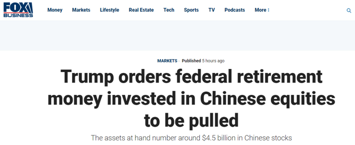 从外因的角度来看,有业内内人士认为,B股突然杀跌可能与特朗普突施冷箭有关。据FOX Business报道,特朗普总统正在努力减少美国联邦退休基金和中国股票之间的投资关系,这个金额可能有45亿美元。