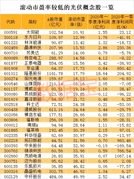 据统计,13只光伏概念股滚动市盈率不足20倍,如太阳能、东方日升、林洋能源、晶澳科技、苏美达、特变电工等。太阳能滚动市盈率最低,为10.91倍。太阳能是中国国内装机容量最大的光伏企业,一季度公司实现盈利1.55亿元,同比增长23.12%。