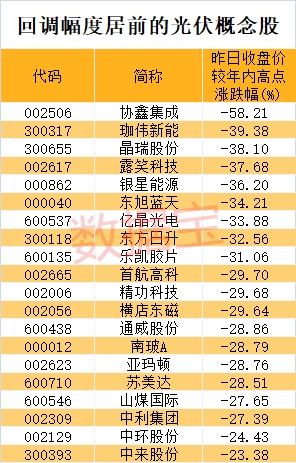 光伏概念股整体回调幅度较大