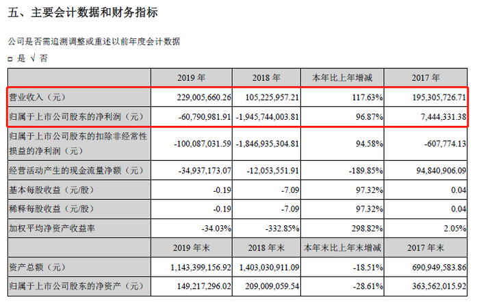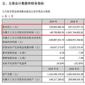 4月30日,天山生物再一次交出了亏损的年度报告。2019年财报显示,天山生物全年营收为2.29亿元,相较去年同期增长117.63%。