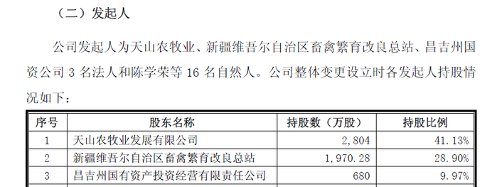天山生物品种改良业务的基础也是新疆的畜禽繁育改良站,公司设立发起人和股东中均出现了新疆维吾尔自治区畜禽繁育改良总站和昌吉州国有资产经营有限责任公司的身影。