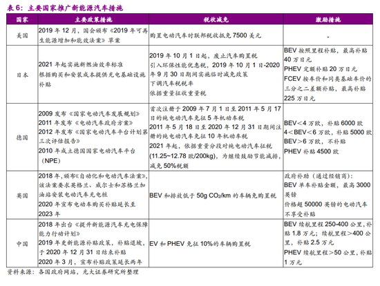 各国政府近年来陆续出台政策措施,扶持新能源汽车行业发展。电动车的发展主要受政策和补贴驱动,各国出台的电动车鼓励措施涵盖了生产、购置、使用、基础设施、产业化支持等多个环节。