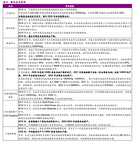 2.2、企业积极布局,固态电池领域陷入“混战”