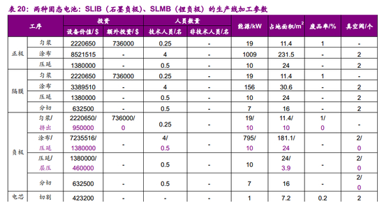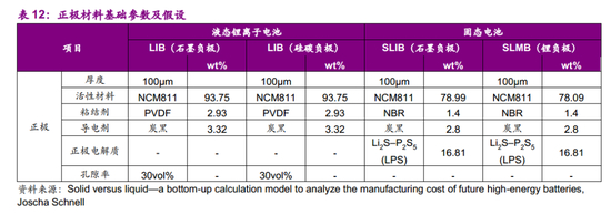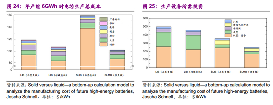 (4)固态电池不需电解质填充步骤,液态锂离子电池SLIB和固态电池SLMB电芯组装成本明显低于LIB。