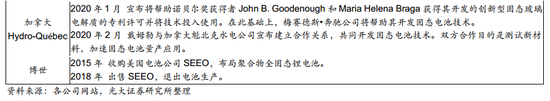 2) 2020年日本丰田计划推出搭载硫化物固态电池的新能源汽车,并于2022年实现量产。十几年前丰田已开展固态电池研发工作,不仅获得了固态电解质材料、固态电池的制造技术等方面的专利,还研发了一整套的正极材料和硫化物固态电解质材料回收的技术路线和回收工序。