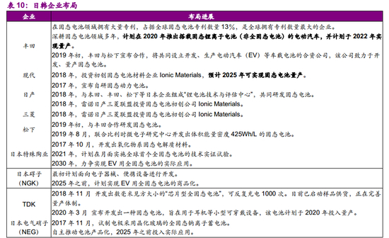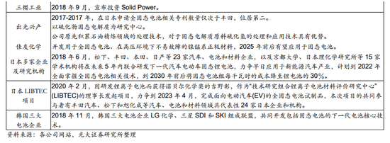 (3)日本电池领域底蕴深厚,企业依靠自身优势组建研发团队攻克技术难关,同时车企横向联合共同开发电池技术,科研机构、车企、电池和材料企业等多行业抱团共同参与研究。