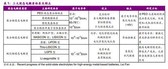 我们认为,目前氧化物体系进展最快,硫化物体系紧随其后,高能聚合物体系仍处于实验室研究阶段,硫化物和聚合物体系都已取得长足进展。