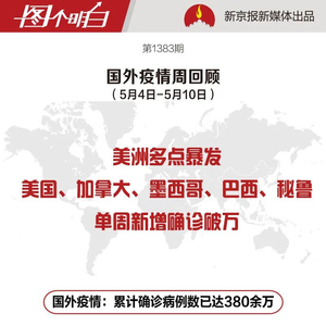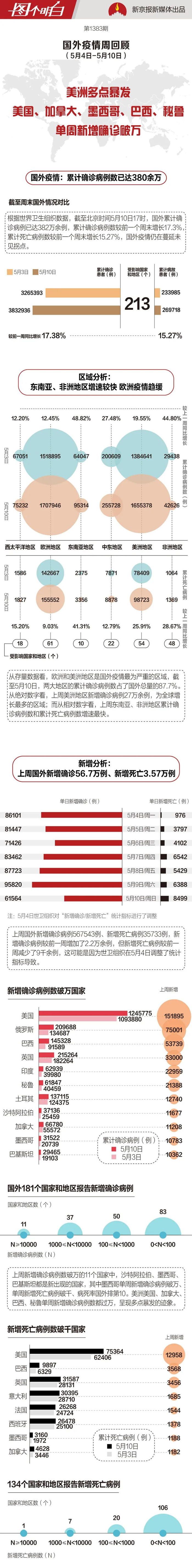 据世界卫生组织发布的全球疫情数据显示,截至北京时间5月10日17时,国外累计确诊新冠病例3832936例,死亡269718例。
