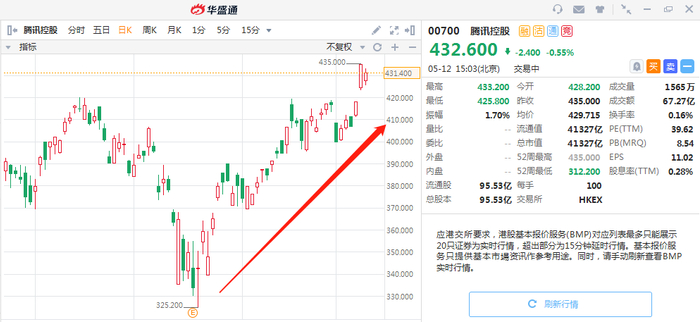 从股价表现来看,2020年3月以来,腾讯已经从最低的325港元涨至最高触及435港元,市值站上4万亿港元。这一个半月时间里,腾讯的区间最大涨幅为33.76%,市值飙涨超过10489亿港元!