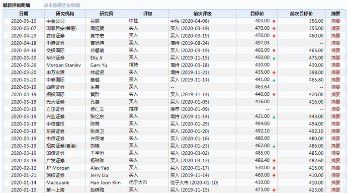 四、彭博预期营收增18%,券商评级多在430港元上方