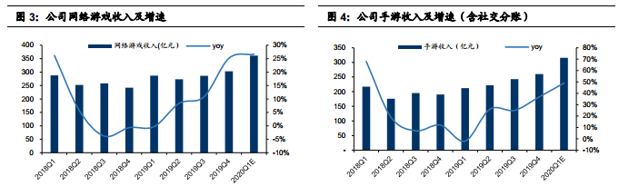 叠加芬兰手游开发商Supercell收入并表影响,预计2020Q1手游收入(含社交分账)同比增长49%至316亿元(扣除Supercell并表后,手游同比增速约35%)。