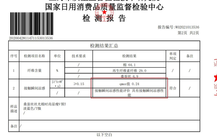 经过检测,接触凉感系数达0.24J/(cm²·s),刚一上身是凉丝丝的,超级舒服。