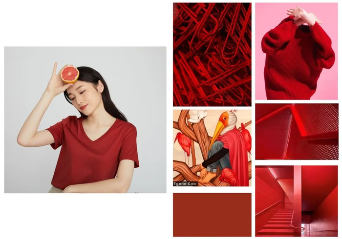 柑橘红,是一种橘调红色,带着淡淡的灰度。