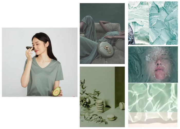 竹青色带着灰调,清爽柔和,富有生机,一眼就给人清风扑面而来的感觉。