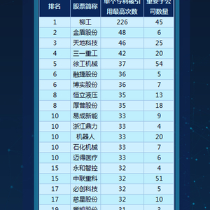 机械设备行业单个专利被引用次数排行榜:柳工第一