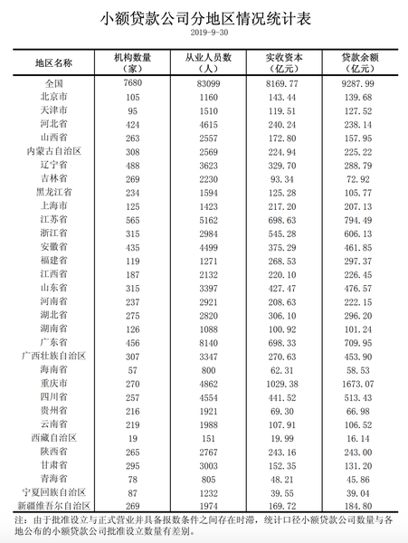 据央行统计,2019年9月末,海南省有57家小贷机构,从业人数800人全国最低,贷款余额58.53亿,与上季度持平,自2018年6月末持续下滑。