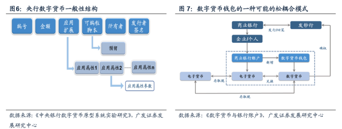 央行数字货币在形式上是一串经过加密的字符串,包括编号、金额、所有者等基本要素。央行数字货币包含编号、金额、所有者和发行者签名四个最基本的组成部分:编号可以作为央行数字货币的索引,也是其唯一标识,因而不可重复;金额是指央行数字货币代表的价值,允许进行拆分,最小单位为1分;所有者代表该货币的拥有人;发行者签名代表央行数字货币的发行方。在基本字段之外,还需要强调的是,结构中还包含了应用扩展字段与可编程脚本,为实现不同场景下多个应用的扩展留出余地,帮助央行数字货币快速适应实际生活中出现的新场景。例如智能合约就归属于这一部分,其本质一套以数字形式定义的承诺,一旦达到触发条件将由计算机自动执行,可以被应用于缴税、反恐融资等多种场景中。央行目前对智能合约尚且保持审慎态度,但表示会加载有利于货币职能的智能合约。
