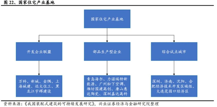 国家政策保驾护航,推动住宅产业化。2006年,建设部(现为“住建部”)颁布了《国家住宅产业化基地试行办法》,开启了国内住宅产业化的进程,全国陆续建立了30多个国家住宅产业化基地,包括开发企业联盟、部品生产型企业和综合试点城市三种形式。