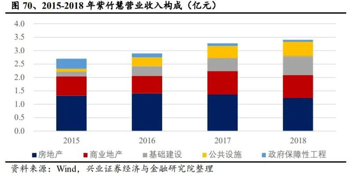 紫竹慧主要服务于房地产、商业地产、基础建设、公共设施、政府保障性工程等项目的建设,其中房地产、商业地产和基础建设是紫竹慧主要的收入来源,总占比超过80%。2015年起,紫竹慧服务项目类型由房地产不断向商业地产、基础建设及政府保障工程逐步倾斜。