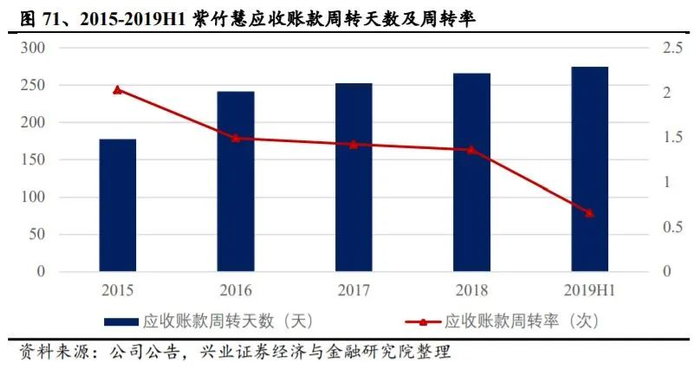 2015-2018年,紫竹慧应收账款周转天数从177.55天增长至265.60天,应收账款周转率从2.03次下降至1.36次,周转能力有所下降。2019上半年,紫竹慧应收账款周转天数274.55天,周转率0.66次。