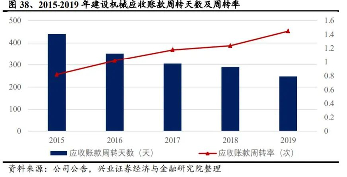 应收账款周转情况是反映庞源租赁经营质量的重要参考,因没有庞源租赁直接数据,考虑庞源租赁是建设机械最主要的业务,这里采用建设机械数据代替。2015-2019年,建设机械应收账款周转天数从441.18天下降至247.46天,应收账款周转率从0.82次上升至1.45次,周转能力大幅提升。