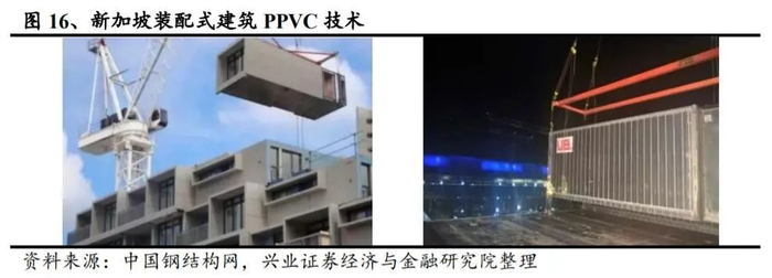 新加坡装配式建筑发展非常成熟,截至2018年装配化率达到70%。新加坡装配式住宅大部分为板式或塔式混凝土多层、高层建筑,多为15-30层的单元化住宅,占全国住宅数量的80%以上。目前,新加坡主要采用的是全装修PPVC(Prefabricated Prefinished Volumetric Construction)技术,它是一种预先精装的箱体建筑模块化技术,将一个可运输尺度内的完整房间,在预制工厂进行组装加工、装修、安装固定设备,达到模块内精装修入住前的程度后再运到工地进行现场吊装。PPVC的箱体主要分为以钢结构为主和以混凝土为主两类。