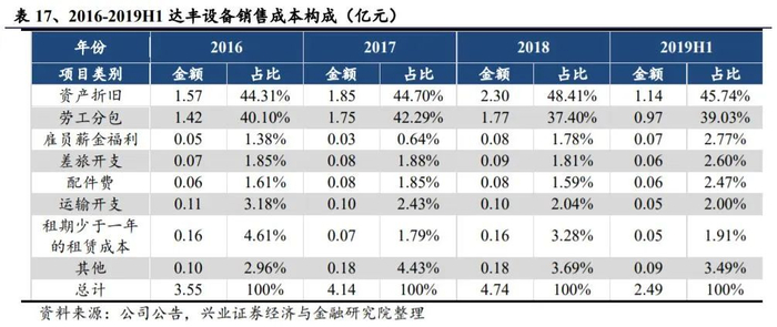 由于达丰设备主要从事一站式塔机解决方案服务,资产折旧和劳工分包是其营业成本最主要的组成部分。达丰设备根据客户项目对塔机操作员及其他相关人员的需求,通过第三方劳工分包公司,为项目提供现场人员。达丰设备专注于塔机租赁业务,十分熟悉市场价格,在选择第三方劳工分包公司时,除了考虑劳务分包公司的相关资质和经验,还可确保获得具有竞争力的价格,使得达丰设备劳务分包成本占比有所下降。