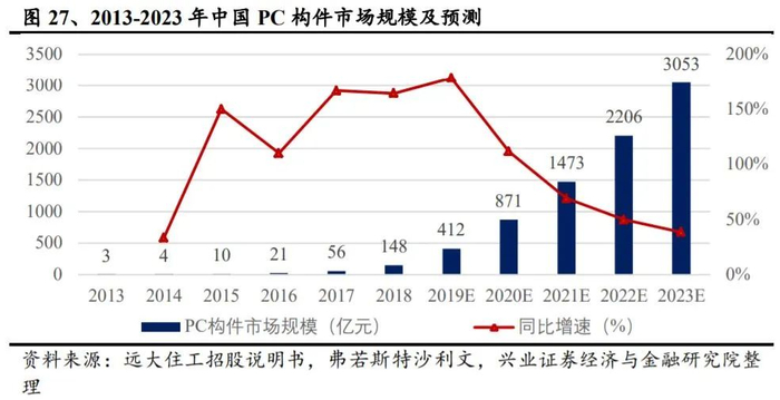 据弗若斯特沙利文和住建部,2014-2019年,我国装配式建筑新开工面积从4760万平方米增长至41800万平方米,年均复合增速54.42%,装配化率从2.7%增加至18.4%。我们预计,2020-2025年,房屋新开工面积按照5%增速增长,装配化率按20%/22%/24%/26%/28%/30%计算,预计到2025年,国内装配式建筑新增面积达92545万平方米,相比2019年年均复合增速达14.16%。