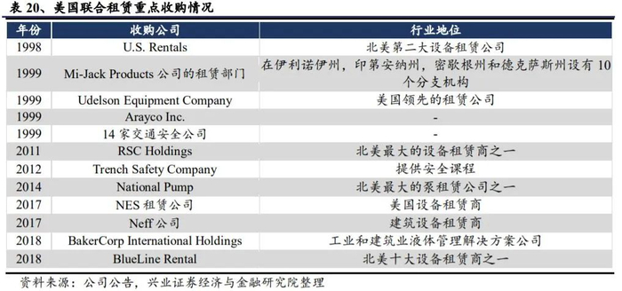 持续并购助力联合租赁市占率不断提高。1998-2019年,美国租赁市场规模从186亿美元增长至535亿美元,年均复合增速5.16%,联合租赁市占率从4.81%增长至14.89%。