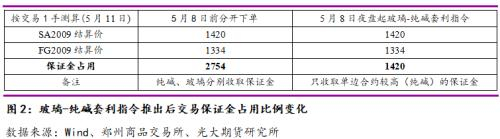 以5月11日收盘行情为例,纯碱主力合约SA2009、玻璃主力合约FG2009结算价分别为1420元/吨、1334元/吨,保证金比例均按照交易所比例5%测算,可得出如上述表格所示结果。