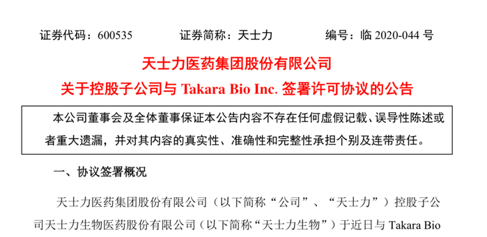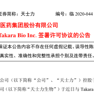 昨日(5月12日),天士力医药集团发布公告:控股子公司天士力生物与Takara Bio(日本宝生物工程株式会社)签署了《C-REV 许可协议》,天士力生物引进一款治疗胰腺癌及黑色素瘤的溶瘤病毒产品。