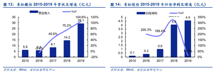 ■收购诺斯贝尔,拓展产业链,进一步整合化妆品业务。2019年5-12月诺斯贝尔并表,带动青松股份实现营收29.1亿元/+104.6%,归母净利4.5亿元/+13.2%,并抵消了部分主营产品松节油深加工产品价格与销量下滑影响。诺斯贝尔已达成2018、19年业绩承诺(17-19年CAGR为15.5%),2020年净利润目标为2.78亿元(对应增速11.2%)。青松股份系国内最大的松节油深加工企业,收购诺斯贝尔切入产业链下游,进一步整合化妆品业务板块,并可借助诺斯贝尔与化妆品企业合作关系拓展松节油产品日化销售渠道。