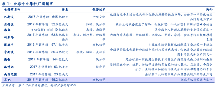 合作原料商实力雄厚,保障原料高质量。公司与30余家全球知名原料供应商或其代理商建立采购关系,能够触及最先进的原料科研成果。其合作厂商包括巴斯夫、德之馨、赛比克、亚什兰、舒美、龙沙、杜邦、科莱恩等国际著名原料商。2013年,诺斯贝尔还与奥地利兰精公司合作推出了“轻透、隐形、安全、环保”的天丝面膜。巴斯夫、亚什兰、克莱恩等为全球十大化妆品原料生产商,拥有防晒、洗护等全球领先技术,为公司生产出高质量产品打下基础。