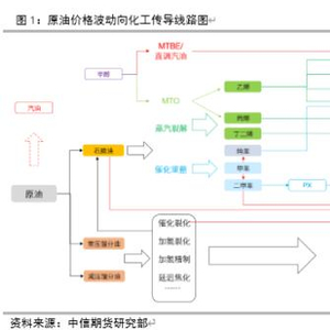 当原油价格发生变化时,会通过汽油池中的催化重整汽油与MTBE对甲苯、二甲苯以及甲醇的需求与价格产生同向拉动,并通过纯苯与PX向下传导至苯乙烯、PTA等品种。