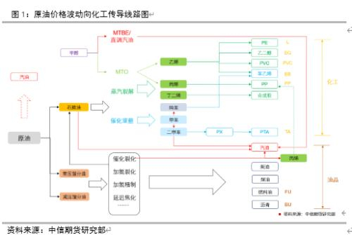 原油价格变化对化工品的影响主要通过石脑油与汽油这两个中介进行传导。