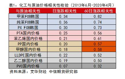 通过对2013年-2020年已上市期货品种与原油价格的相关性检测,我们发现结果基本与上述推断一致。
