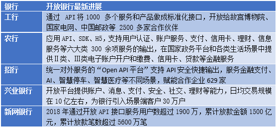 大部分银行都在最近发布的2019年报中披露了通过开放API获取新场景的进展。