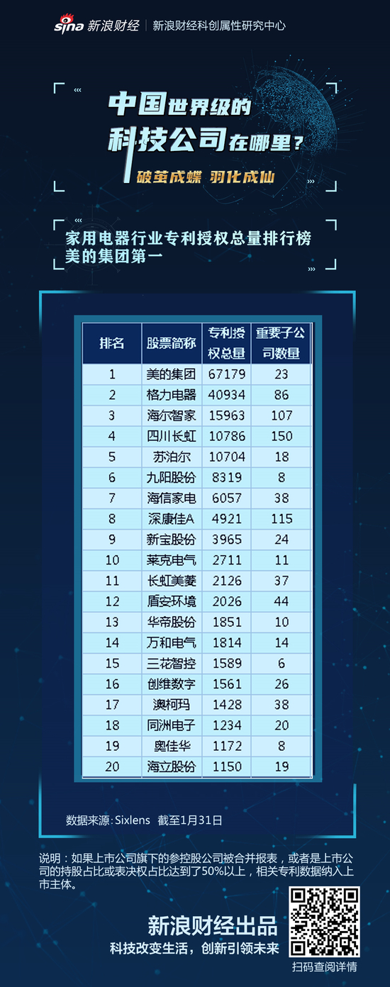 那么,家用电器行业的专利授权总量究竟如何呢?「新浪财经科创属性研究中心」将为你一一解答。