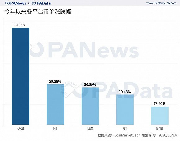 根据统计,在1月1日至5月13日期间,OKB从2.62美元一路上涨至5.10美元,涨幅高达94.66%。而其他4个平台币的同期涨幅都不超过40%,HT上涨了38.36%,LEO上涨了36.59%,GT上涨了29.43%,BNB涨幅最低为17.90%。